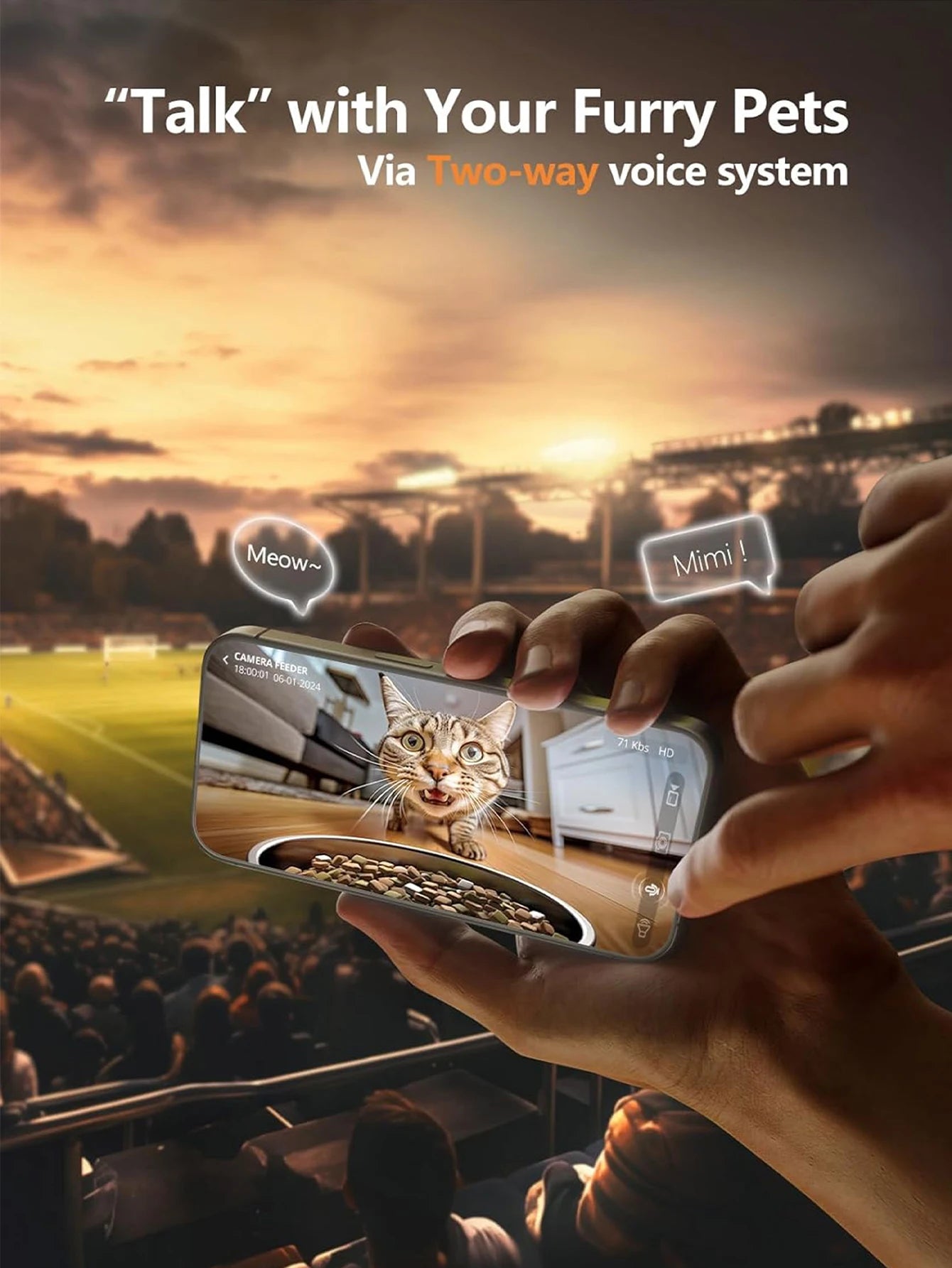 8L Automatic Cat Feeder With 1080p Camera Video WiFi Cat Food Dispenser Pet Smart Voice Recorder Remote Control Pet Auto Feeder